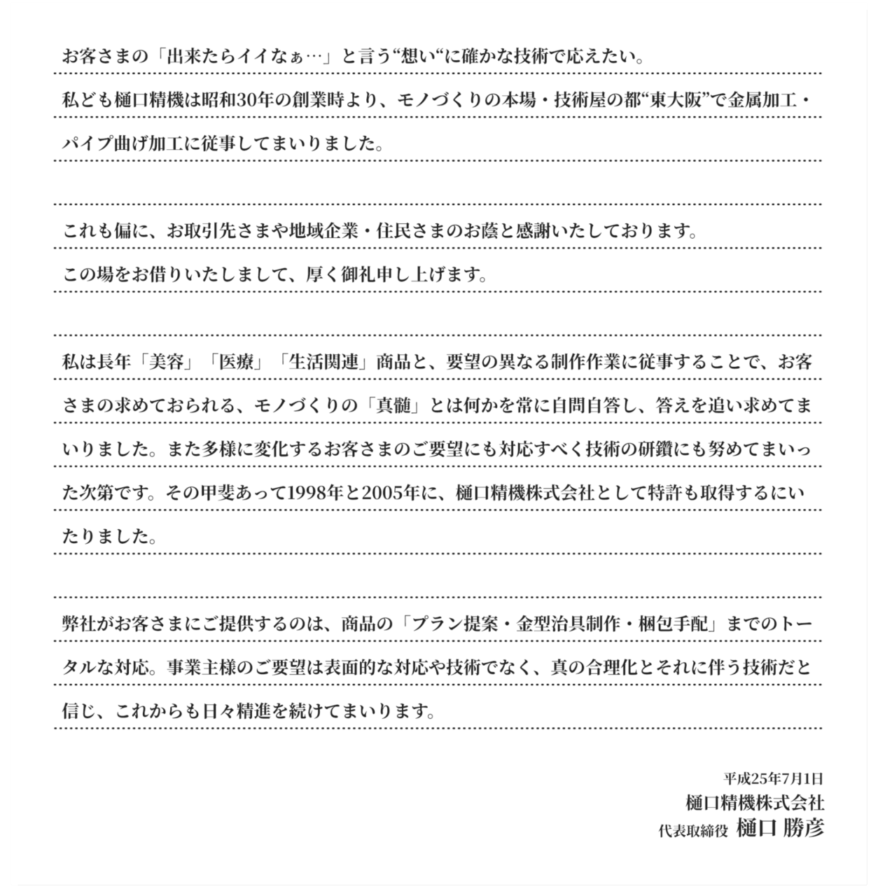 樋口精機株式会社の会社案内です。
